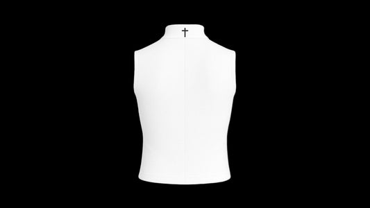 “GOD’S GOT ME SLEEVELESS TURTLE NECK COMPRESSION SHIRT (WHITE)